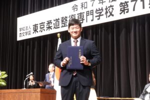 これまでのみなさんの努力は自信へと繋がり、皆さんの活躍を支えてくれるはずです。 東京柔専で培った知識や技術、出会いを大切にそれぞれの道で輝いてください。 今後も皆さんのご活躍を教職員一同心より応援しております。